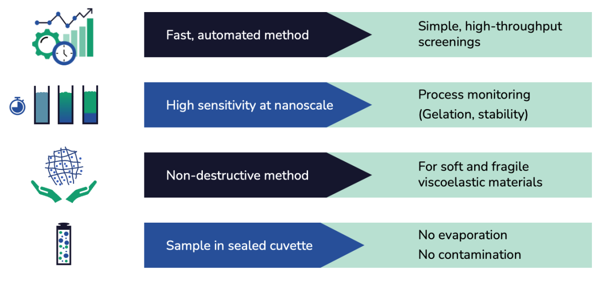As a micro-rheology platform, the DWS RheoLab provides several advantages no matter your specific application: